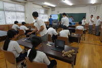 7月7日(金)の放課後、気比中学校にて、敦賀工業高校の生徒4名と教員3名が来校し「敦工生と語る会」が開催されました。本校の3年生の希望者10名が参加して、工業高校の特色の説明をお聞きした後、専門のものづくり学習を体験しました。