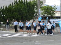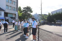 夏休み前最終登校日の本日、生徒会のメンバーがPTAの方々と協力して校門前であいさつ運動を行いました。生徒会のメンバーが大きな声で挨拶をすると、多くの生徒から元気な声と素敵な笑顔が返ってきました。