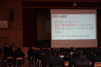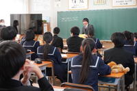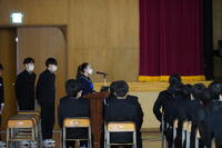2年生の学活・総合の時間において、二州地区にある高校(敦賀気比高校・敦賀高校・美方高校・敦賀工業高校)の説明会が開かれました。高校生や高校の先生方が来校し、学校・学科説明や、日頃の学校生活について話してくださいました。中には、高校から本格的に始まる「探究」の発表も聞くことができ、高校からどのようなことを学ぶのかが明確になった説明会でした。