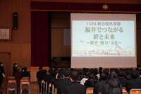 地域の方々や講師の方をお招きし、1年生は敦賀市内や嶺北方面に、2年生は敦賀駅前商店街や石川県金沢市に行って学んだことを踏まえ、敦賀の街づくりについて提案をしました。