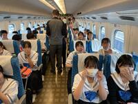 気比中学校を出発して、生徒全員元気にJRに乗車しました。