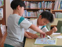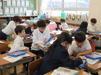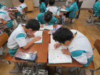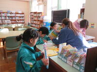 学校では、週末の家庭での読書を充実させるため、学級ごとに図書室に行き、本の貸し借りができる時間を設けています。