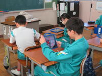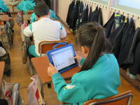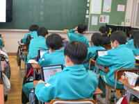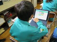 2年生はタブレットを用いて熱心に九九の練習もしていました。