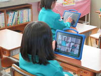学校にいる担任が、タブレットを用いてリモートで朝の会を行いました。