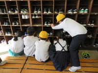 子どもたちは、教室のロッカーや児童玄関の下足箱を掃除し、気持ちよく休みを迎える準備をしていました。