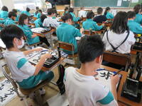 講師の先生には、毎年この時期に、冬休み明けに行う「校内書き初め大会」に向けてご指導いただいています。