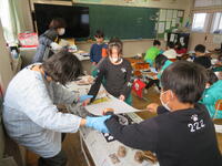 1、2、3年生が、最後の工程「刷る」作業を行いました。