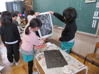 1・2年生はスチレン版画、3年生は木版画です。