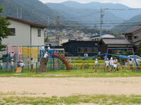 校庭の遊具はどの学年にも人気です。今日は6年生が楽しそうに遊んでいました。