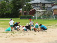 校庭では、草むしりをしていた教員を見つけ、1年生の子どもたちが手伝ってくれました。