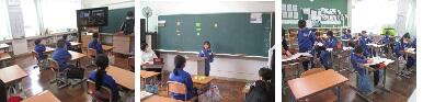 5年生は、最後の外国語の学習と理科を紹介します。外国語では、リスニングの後聞き取ったことを発表している場面でしたが、まっすぐ伸びた右手が何本も上がっており、やる気が見えました。理科では、先日組み立てに苦労していた乾電池自動車が完成し、体育館で試運転が行われていました。スイッチを入れると、まっすぐ走ります。子供たちは、嬉しそうに走る車の後について歩いていました。