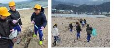 1~5年生は、今日から新しい1日が始まりました。登校は、本当に自分たちだけになり、班長たちから慎重さが伝わりました。挨拶も引き続き、頑張っていました。授業では、自分たちが作った動画を鑑賞する卒業生の様子を見て思いをはせたり、まとめの学習に取り組んだりしていました。3年生は、松原海岸で、ゴミ拾いのボランティア活動を行ってきました。
