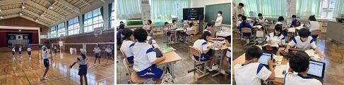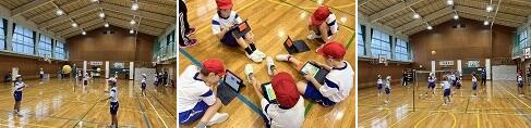 3年生体育・・・3つのチームにわかれて、ポートボールを楽しんでいます。