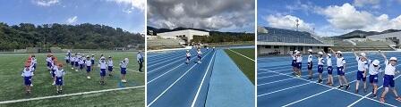 1年生体育・・・おいかけリレーをしています。力が拮抗していて大接戦でした。