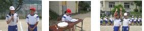 学校に戻ると、校庭で、高学年が体育祭の練習をしていました。色別対抗のリレーと綱引きです。5、6年合同で練習するのは今日が初めてだそうで、勢いに乗ろうと大きな声で応援していました。さあ、本番はどちらが勝つでしょう・・・。熱い戦いを!