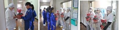 今日は、毎日美味しい給食を作ってくださる3名の調理員さんに、児童代表が感謝を伝えました。