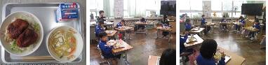 学校給食週間中の本日のメニューは、ソースカツ丼、ボイルキャベツ、冬野菜のみそ汁、牛乳でした。雪の中、頑張って登校してきたご褒美のような給食です。大変美味しかったですね。低学年の教室にお邪魔しました。「給食週間のどのメニューが好きでしたか。」と聞くと、1年生からは「全部!」、2年生からは「明日の唐揚げが楽しみ。」との声がありました。(私たち教職員もですが)子どもたちにとって、給食は、1日の中の最大の楽しみですね。