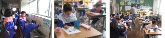 歯磨き教室では、最初に養護教諭より歯についてのお話がありました。その後、歯の汚れた部分に着色するピンクの錠剤を口に入れ、丁寧に口や歯全体にのばしました。1回だけすすいだ後、教室で、磨き残しチェックです。鏡をのぞき込み、プリントの歯の絵の同じ場所を色塗りしました。自分の磨き残しの場所が分かった後は、歯科衛生士さんから歯の磨き方を教わり、実際に鏡を見ながらピンクの汚れを磨いて落としました。