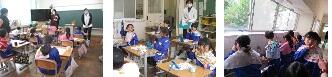 本日、5年生の家庭科で、栄養教諭による「だしのうま味を感じよう」と題した授業が行われました。