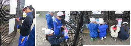 4年生が、社会科のゴミの学習の関連で、地域のゴミステーションの掲示板のリニューアルを行いました。事前に、一言メッセージを入れた掲示板を学校で作成。昨日、学校近くのゴミステーションに行き、文字が見えなくなった古い掲示板と交換しました。掲示板を眺めつつ、ゴミステーションがきれいに使用されることを願いました。