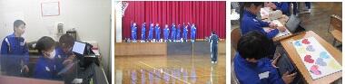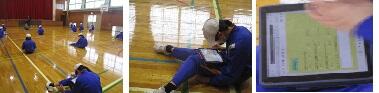 体育館に入ると、全員タブレットを見つめています。体育で何をしているのか画面を見ると、今日の授業の3つの目標の確認でした。その後のチーム分けでは、ライバル同士で3人組になり1~3の番号を決め、同じ番号でチームになりました。「ライバル同士」と言われ、嫌みなく、さあっと3人寄っていくところに、6年間をともにした仲を感じました。ゲーム前後の作戦会議では、めあてに即して固まらずにパスを回るために簡単な役割分担をしたり、それらの振り返ったりしていました。「おれ、シュートできんから。」と素直に話したり、シュートの得意な人がゴール下のポジションにいたりと、作戦が生きていると思いました。こうした得意不得意を理解し合い、作戦を立てることができることも、6年生らしい姿でした。最後に、3つの目標の振り返りを入力していましたが、どんな自己評価ができたでしょうか。