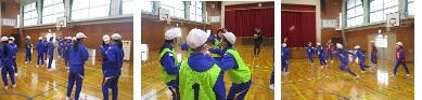 トップバッターは、かわいらしい1年生です。大きな声で、ジェンカの説明をし、踊りをやってみせ、全校に指示を出していきました。体育館に長く繋がった列が2列できた時点で終了し、6年生がたくさんいた列の勝利だそうです。最後の言葉では、6年生に向けて、頭の上で大きなハートを作って大好きとポーズをし、6年生の心を射抜いていました。