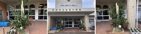 12月18日(日)に沓見区壮年会の皆様のご厚意により、門松が設置されました。雄松・雌松の一本木をはじめ、立派な材料を使用して、どこにも負けない素敵な門松が沓見小学校の玄関に飾られました。沓見区の皆様ありがとうございました。
