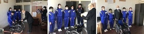 今年も沓見地区全体でたくさんのアルミ缶が集まり、車いす2台を購入することができました。そのうち1台を社会福祉協議会さんに寄贈しました。会長さんやこれまで車椅子を使用された方からお礼の言葉をいただきました。式の様子は、全校児童にも紹介しました。沓見地区の皆さんありがとうございました。