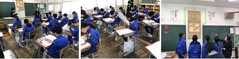 テーマは、「つくって知ろう!掛軸の魅力」です。掛軸についての解説を聞いた後、説明に沿ってミニ掛軸の制作をしました。本紙の他にいろいろな細かいパーツがあることがわかりました。本物の美術品の鑑賞もでき、よい経験になりました。
