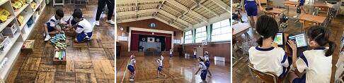 昼休みは、教室で過ごしたり、割当の場所(体育館・グランド・図書室)で運動や活動をしたりして過ごしています。