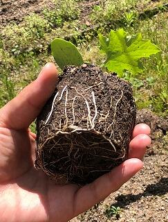 土の中に根(ね)が見えますね。土の中ではこんなにも根が広がっているんですね。