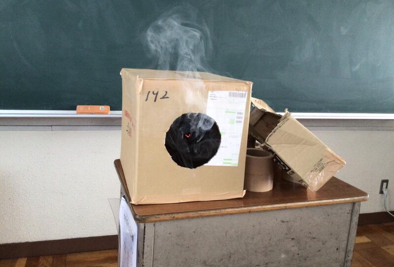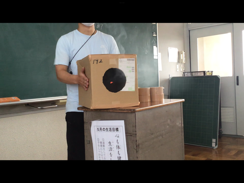 理科の時間に「空気砲」を使って空気の流れを感じる実験をしました。
