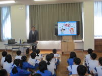 今日は、松原小学校区の保育園と幼稚園から年長のみなさんが学校にやってきました。