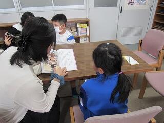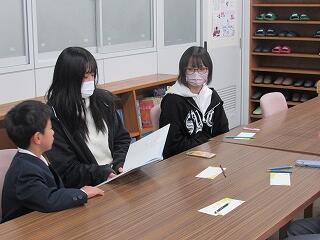 高校生のお姉さん、お兄さんのところに持って行って、「読んでください。」とお願いします。