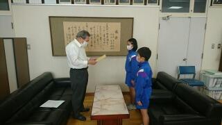 全校児童を代表して、ふれあい委員会の2名が校長室で行われた贈呈式に参加しました。