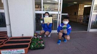 代表児童は、「みんなの心が癒やされるように、いただいた花を大切に育てます。」