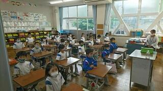 児童は各教室で校内放送を聞きました。