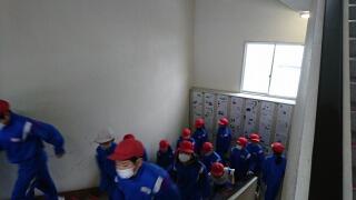 4階まで避難したら、廊下で全員無事避難できたか確認しました。