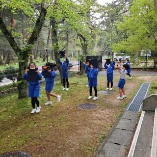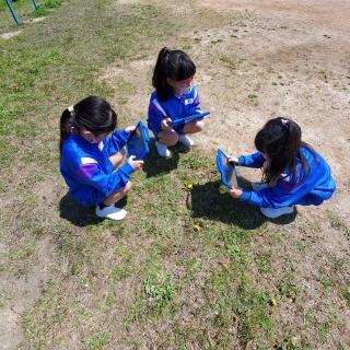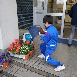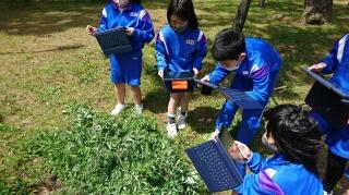 校舎の周りの植物や生き物から春の様子を見つけ、写真に記録しました。