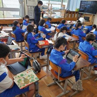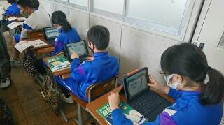 今日は、5,6年生のタブレットを使った学習の様子を少しお伝えします。