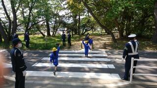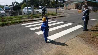 みんなしっかり安全確認をして、右手を挙げて横断歩道を渡ることができました。