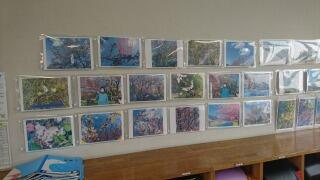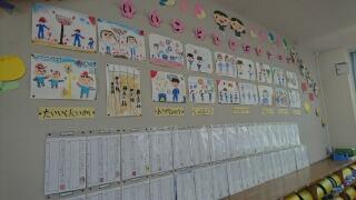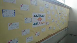 教室や廊下の掲示板には、子どもたちの作品が並び始めています。