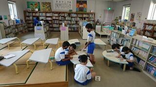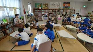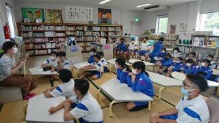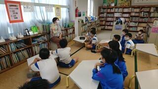 こちらは、図書館で支援員さんによる読み聞かせを聞いている6年生の様子です。