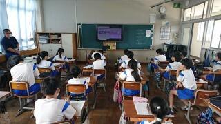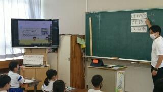 【6年1組 総合】予定しているほかの学校とのテレビ会議の練習をしていました。