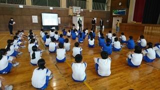 体育館で2クラス合同で行いました。