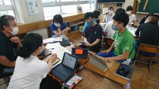 グループに分かれて話し合い、気づいたことをタブレットに書き込み、