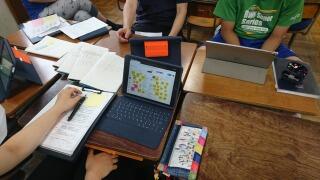 テープ図をかいて式を考えるために、付箋やICT機器の