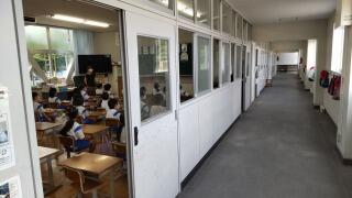 体育館で行う予定だった「全校集会」は各教室で放送を聞いて行う形にしました。