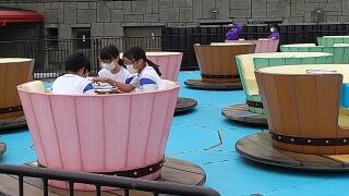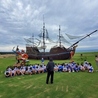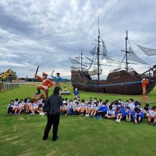 修学旅行の最後の見学地、芝政ワールドに到着。空模様が少し怪しくなってきました。