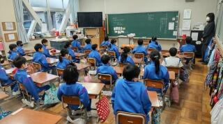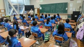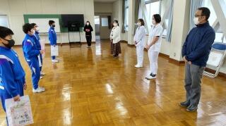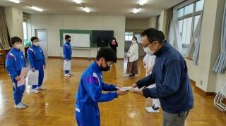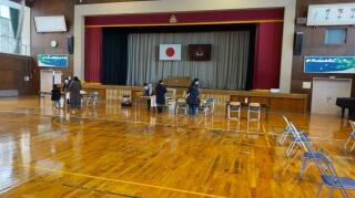体育館の気温とコロナ感染対策に配慮し、各教室で校内放送を聞くという形で行いました。(また、冬休み中に体育館の床にコーティング処理をしていただきましたが、その匂いが少し残っている状態でもありました。)
